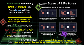 Grid Gambit is an unpredictable multiplayer territory-control game set inside a live Conway’s Game of Life. Built for the GDevelop Big Game Jam #8, you’ll battle players, survive cellular hazards, and even take over the simulation itself.