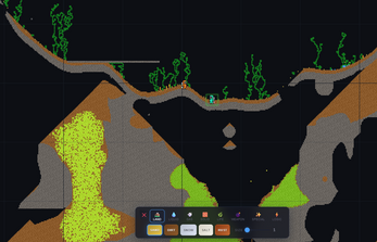 - Deep Falling Sand Engine: Every pixel runs on cellular automata physics—featuring fluid dynamics, thermodynamics, gas physics, and chemical reactions.