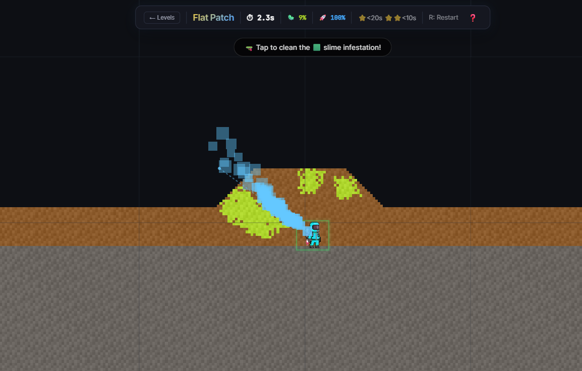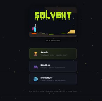 Solvent is what happens when a falling-sand physics engine meets a power-washing platformer. Strap on a jetpack, grab your high-pressure nozzle, and dive into a fully simulated, pixel-perfect world where every grain of sand, drop of water, and spark of fire reacts in real-time.